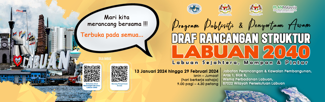 Program Publisiti dan Penyertaan Awam ini akan diadakan bermula 13 Januari 2024 sehingga 29 Februari 2024 bagi mendapatkan maklum balas daripada orang awam dan semua pihak berkepentingan terhadap Draf Rancangan Struktur Labuan 2040 (DRS Labuan 2040). Pelaksanaan program publisiti dan penyertaan awam adalah selaras dengan peruntukan di bawah Seksyen 13, Akta Perancangan Bandar Dan Desa 1976 (Akta 172) di mana sebelum Draf Rancangan Struktur diluluskan untuk diterima pakai oleh Pihak Berkuasa Perancang Tempatan (PBPT), orang ramai diberi peluang untuk memberi cadangan dan mengemukakan bantahan.