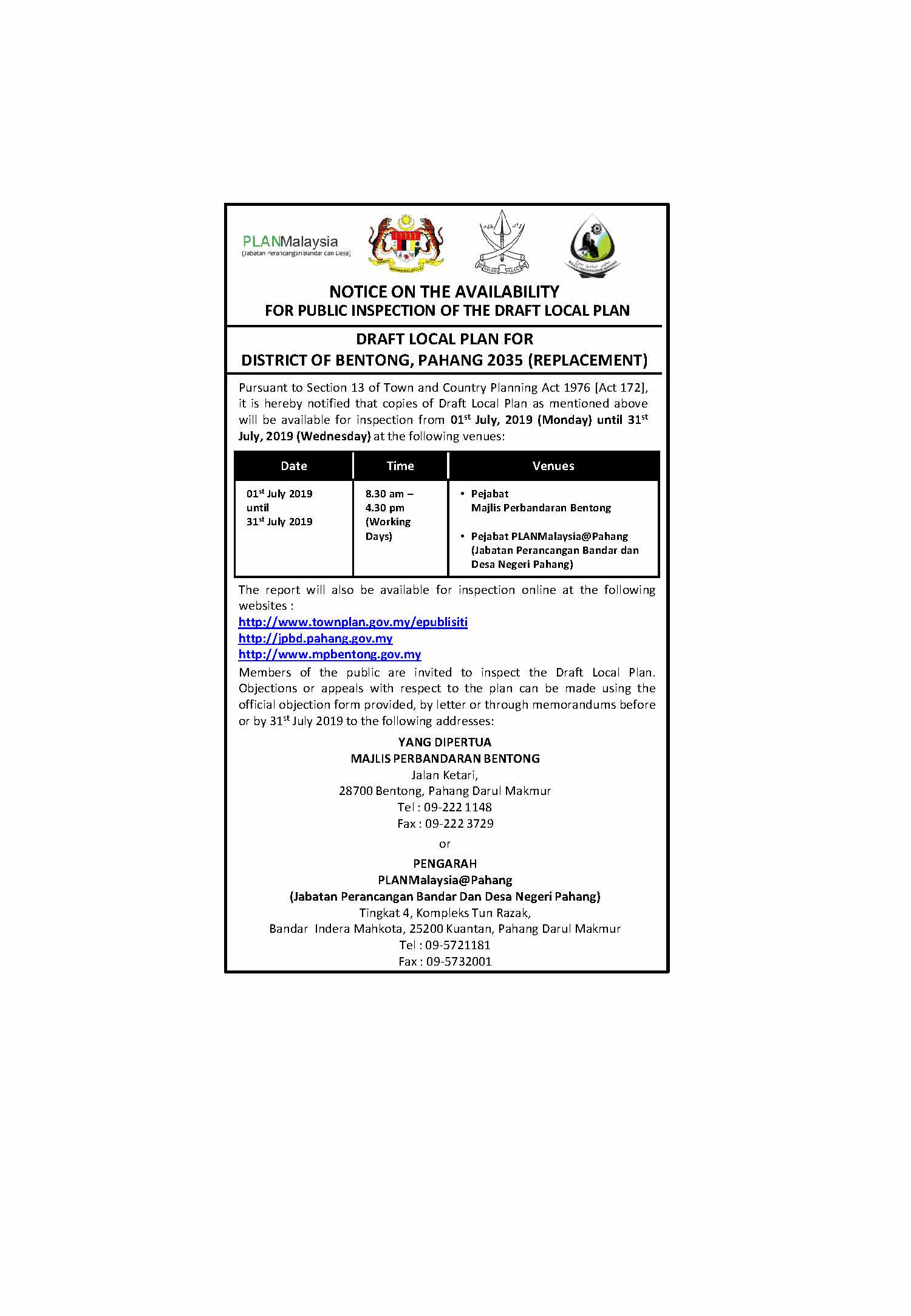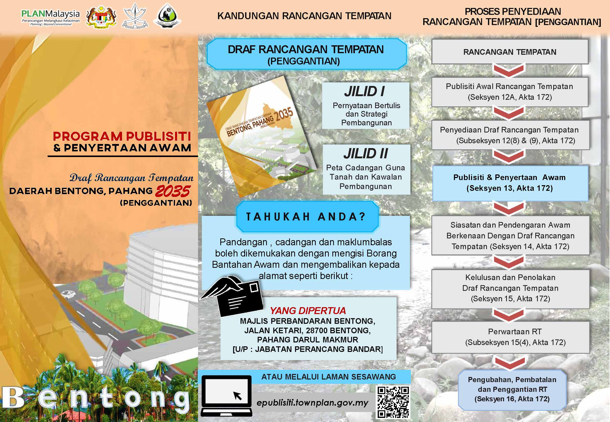 Rancangan Tempatan (RT) merupakan satu dokumen yang disediakan selaras dengan peruntukan seksyen 12, Akta Perancanagn Bandar dan Desa 1976 (Akta 172) dan Manual Penyediaan Rancangan Tempatan (Pindaan 2001, PLANMalaysia) Menurut peruntukan di bawah Akta Perancangan Bandar dan Desa 1976 (Akata 172), Pindaan Rancangan Tempatan boleh dilaksanakan mengikut kepada peruntukan berikut : Visi | |||||||||||||||||||||||||||||||||||||||