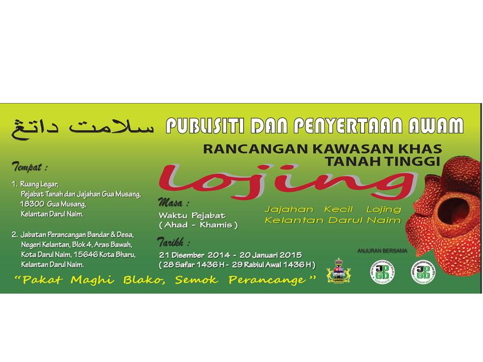 Fungsi Rancangan Kawasan Khas (RKK) Tanah Tinggi Lojing adalah melengkapkan sistem perancangan fizikal negara dengan menterjemahkan polisi, dasar dan strategi Rancangan Fizikal Negara (RFN), Rancangan Struktur Negeri (RSN) dan Rancangan Tempatan (RT). Membolehkan Pihak Berkuasa Tempatan (PBT) melakukan tindakan pembangunan dengan kadar segera bagi sesuatu kawasan. Program Pelaksanaan