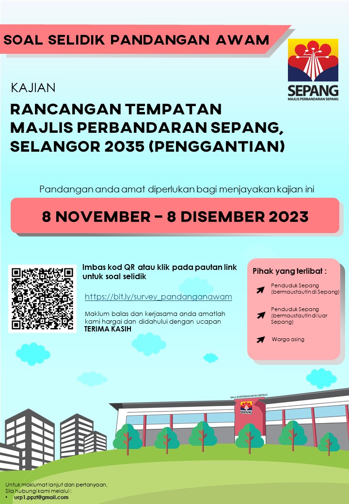 Segala maklum balas akan diambil kira sebagai input dalam penyediaan Terma Rujukan bagi Kajian Rancangan Tempatan Majlis Perbandaran Sepang, Selangor 2035 (Penggantian).