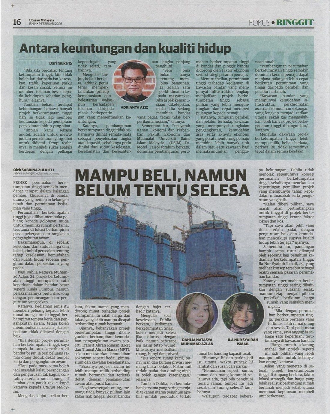 ANTARA KEUNTUNGAN DAN KUALITI HIDUP