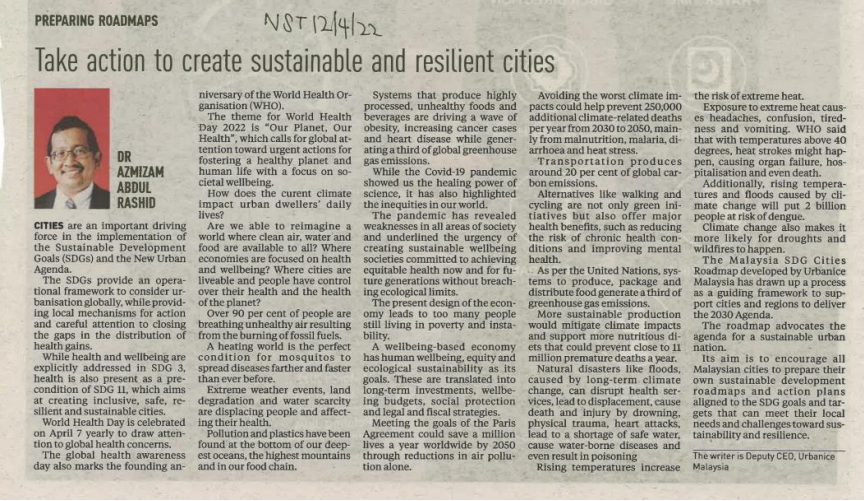 TAKE ACTION TO CREATE SUSTAINABLE AND RESILIENT CITIES - NST (12 APRIL 2022)