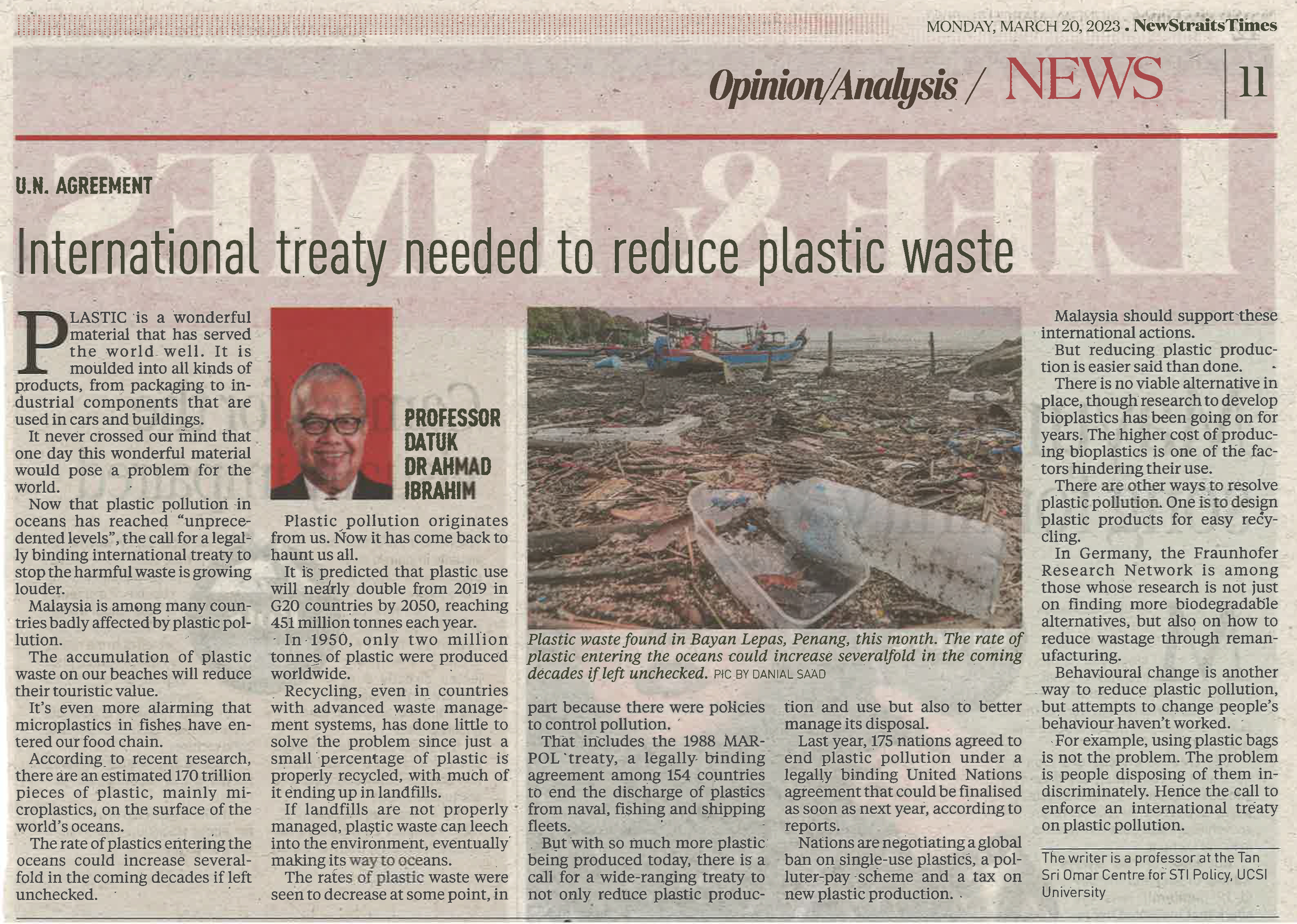 INTERNATIONAL TREATY NEEDED TO REDUCE PLASTIC WASTE