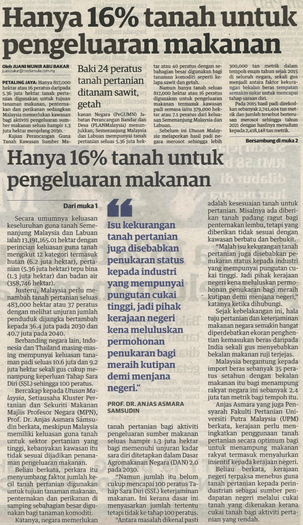 16% TANAH PENGELUARAN MAKANAN