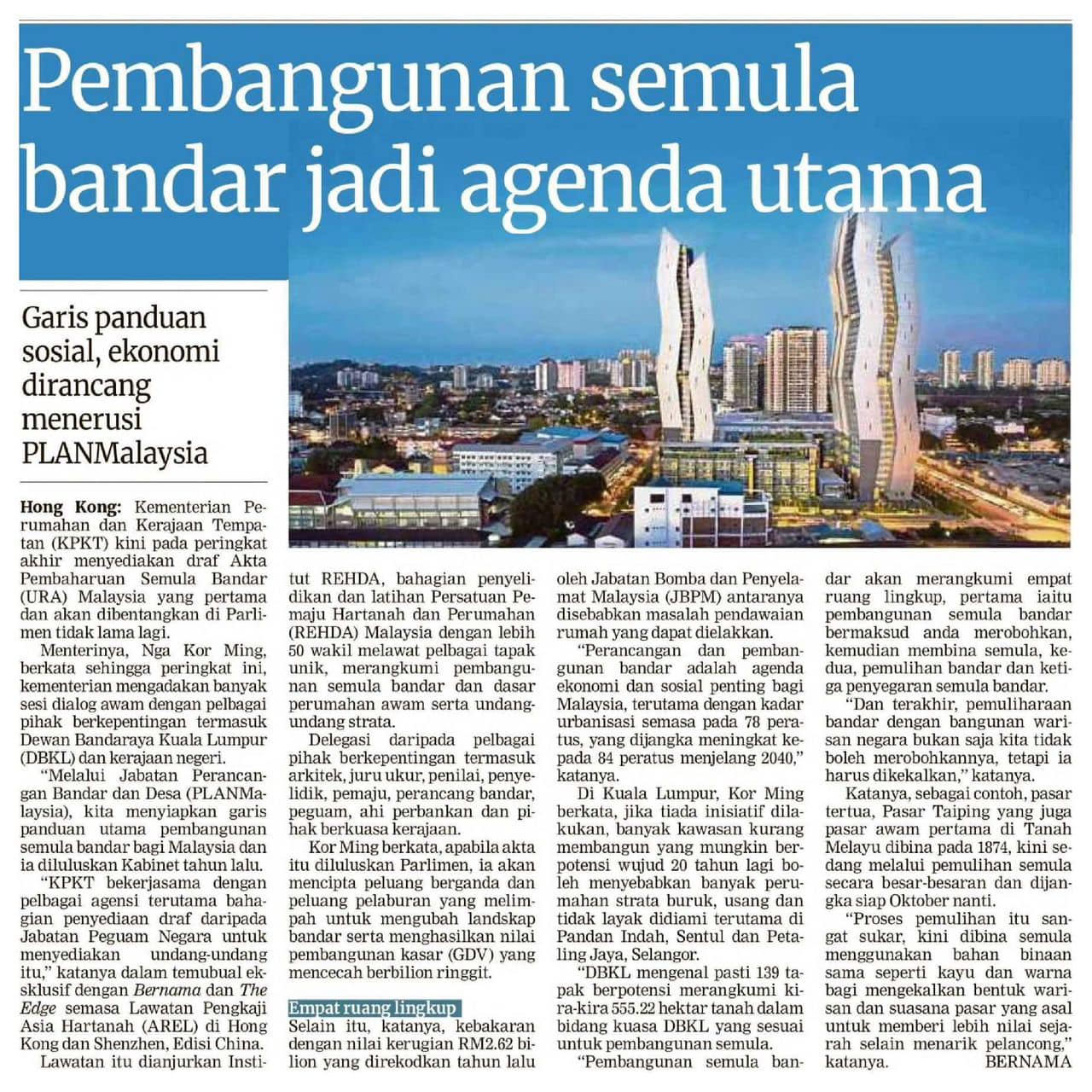 PEMBANGUNAN SEMULA BANDAR JADI AGENDA UTAMA