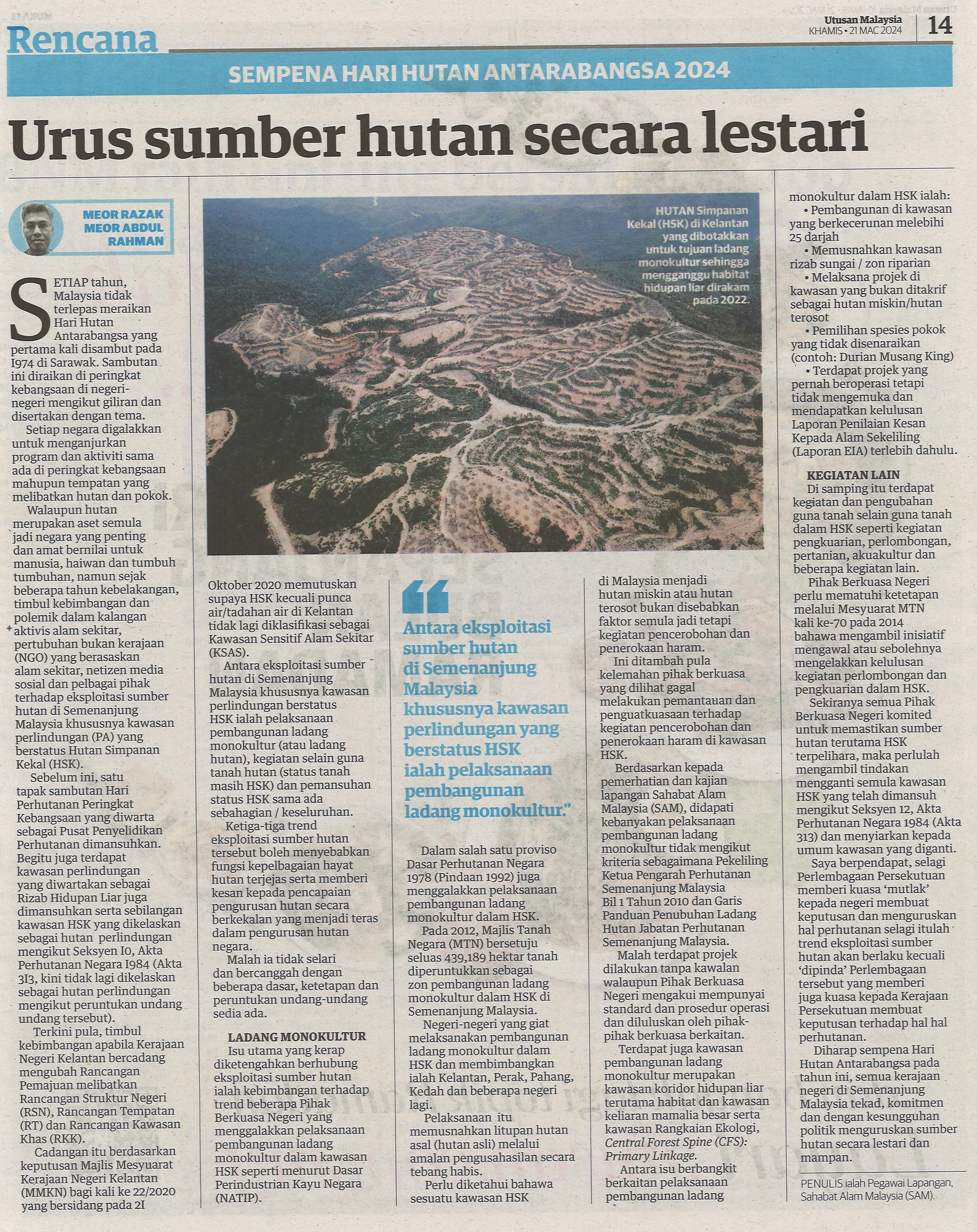 URUS SUMBER HUTAN SECARA LESTARI