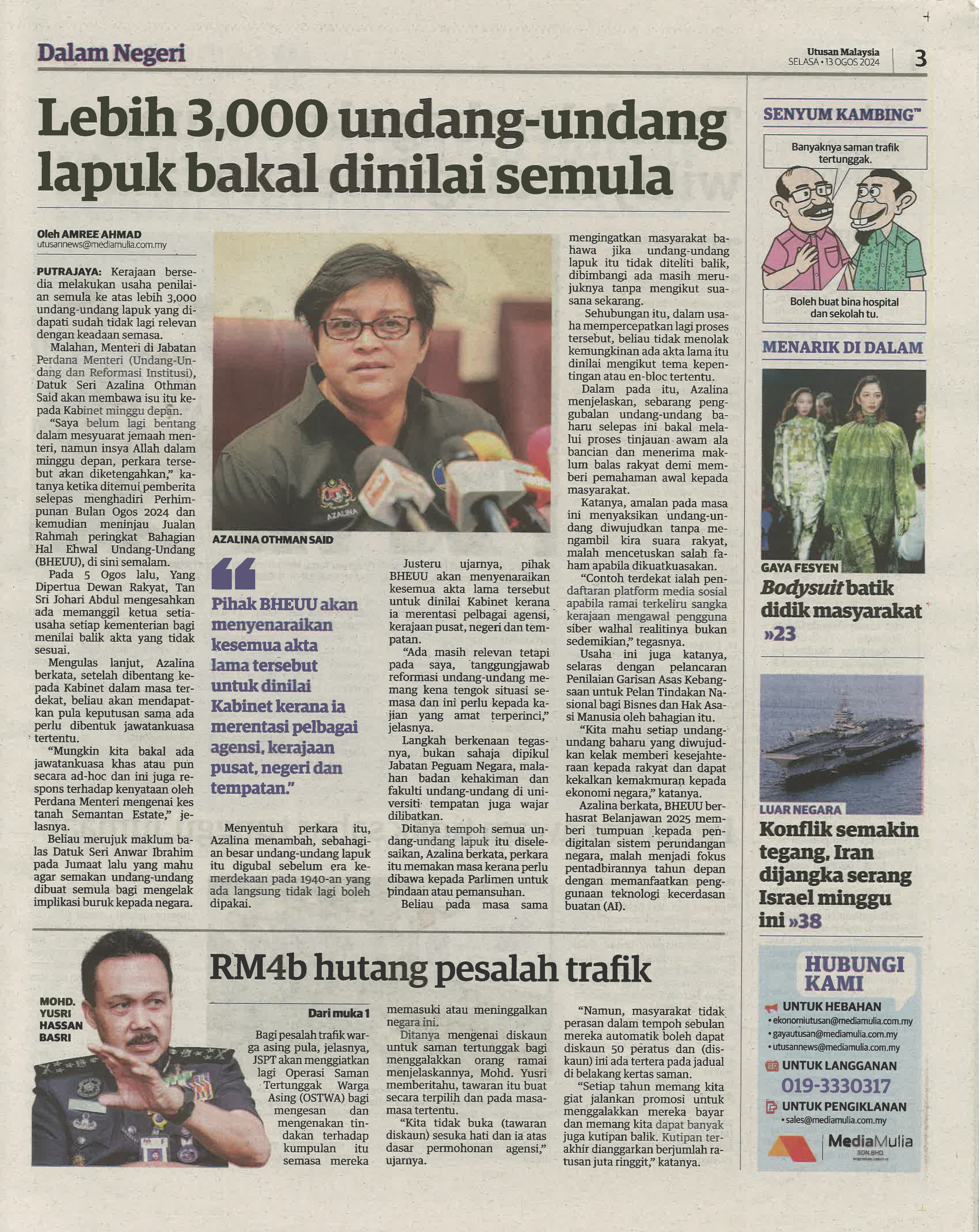 LEBIH 3,000 UNDANG-UNDANG LAPUK BAKAL DINILAI SEMULA