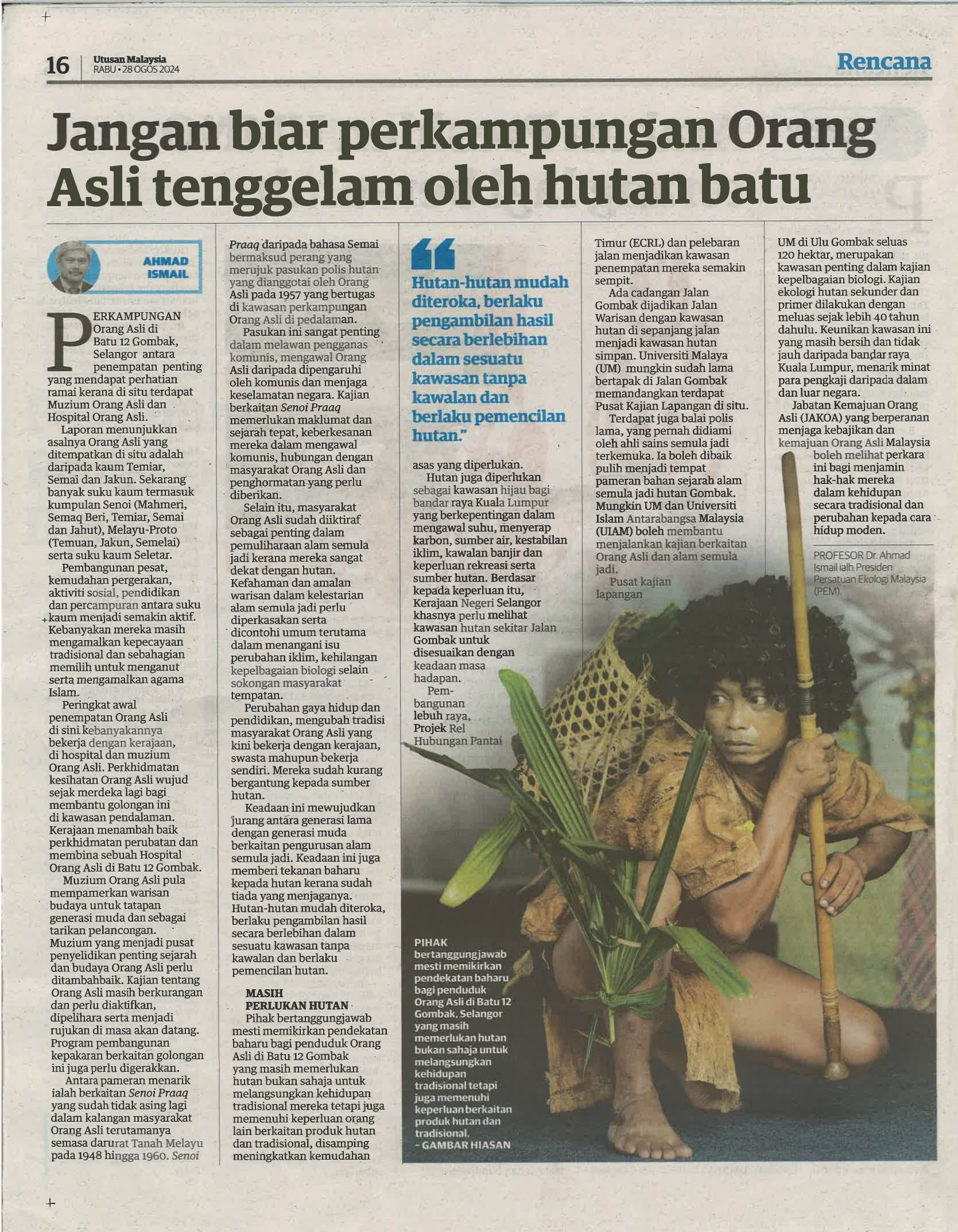 JANGAN BIAR PERKAMPUNGAN ORANG ASLI TENGGELAM OLEH HUTAN BATU